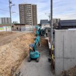 道路位置も確定し、側溝を配置したり、道路内に、ガス管・水道管などを敷設しています。