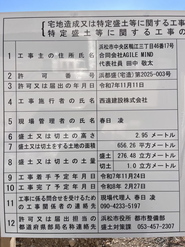 2025年12月19日 / 最終更新日 : 2025年12月18日 agilemind お知らせ 浜都盛第2025-03 改正盛土規制法の許可を得て、三組町で新たな造成を始めました(わずか二区画です)。 ご関心あれば、お問い合わせください。
